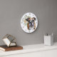 Behind the beautiful watercolor portrait of a brown and white Bulldog on this clock is a pretty white rose bouquet. Dark gold numbers and markers around the perimeter make the clock easy to read. Perfect for anyone who has lost their heart to a Bulldog.