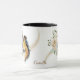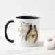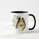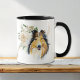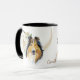 Behind the beautiful watercolor portrait of a Collie dog on this mug is a pretty white rose bouquet. The bouquet and dog image are against an overlay swirl of faux glitter confetti. The image is printed on two sides, with your custom text at the centre bottom between the images.