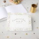 A beautifully presented guest book which came with a lovely gift box for storage. The book was hard back so stayed fresh after being handed around to all our wedding guests. We had lots of compliments about the design which went perfectly with our theme. Perfect, no issues at all with the printing. It arrived on time and came well packaged.