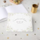 A beautifully presented guest book which came with a lovely gift box for storage. The book was hard back so stayed fresh after being handed around to all our wedding guests. We had lots of compliments about the design which went perfectly with our theme. Perfect, no issues at all with the printing. It arrived on time and came well packaged.