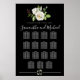 White Rose Floral on Black 15-Table Seating Chart