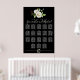 Elegant, keepsake 18-Table seating chart. Beautiful and easy DIY wedding sign features a white rose posy at the top. At the bottom is a white rose wreath with your wedding date. The wedding couple names are written in a carefree script font. The white text and roses are stunning against the black background. Frame it (frames are available on Zazzle) to use at your reception - then take it home as a keepsake of those who attended your wedding. This seating chart is part of the Antique Roses collection that contains many DIY wedding templates to create a personalized wedding ceremony and reception. You should see a link to it on this page. If you don't or need help with an item, please contact me.