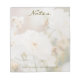 Elegant notepad featuring a dreamy photo by Destei of white roses with a white overlay. The top has a personalizable text area that reads "Notes," while the bottom includes space for "From the desk of" followed by your name. A refined floral design perfect for adding a romantic touch to everyday writing.