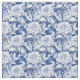 White Rose Flowers on Blue Nature Wallpaper Fabric