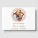 A white background, rose gold foil text. Decorated with a rose gold frame. Personalise and add your photo, names and the wedding date.