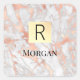 White & Rose Gold Marble Gold Box, Name & Monogram Square Sticker