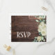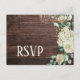 White rose hydrangea floral dark wood wedding rsvp invitation postcard
