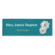 White rose in teal, beautiful name plate, or tag for business, company, school, office.