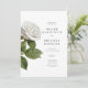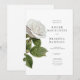 An original digital illustration of white roses in the style of vintage botanical sketches is featured on this invitation.