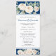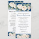 Elegant white rose floral design. The roses are nestled in sage green leaves. The navy blue background shows them off to perfection. The rose floral design creates both a top and bottom border on the front and back. There is a lot of room for you to add your own wedding program details. This wedding program is part of the White Rose on Navy collection. It contains the templates you need to personalise your wedding ceremony and reception. You should see a link to it on this page. If you don't see a link or need help with an item, please contact me.