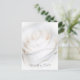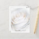 Wedding rsvp postcard white rose design. Customise this white wedding rsvp postcard with your wedding details. Should you require any help with customising then contact us through the link on this page. White rose personalised wedding rsvp postcard