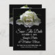 Beautiful wedding Save the Date announcement with a photograph of a dew covered white rose bloom, on a black background. Customise the text to suit your needs. Great way to notify everyone well in advance, of your upcoming destination wedding.