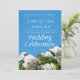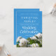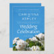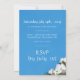 Beautiful floral wedding invitation featuring dreamy white roses and a clear blue summer sky.