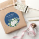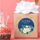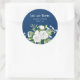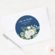 White Roses and Baby's Breath on Navy Blue Wedding Classic Round Sticker