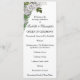 An elegant white floral wedding program, very suitable for either a garden or botanical-themed wedding. This pretty card features a bouquet of white roses in the top left corner on the front, highlighted by green ferns. All of the details on both sides of the card can be easily customised to suit. The reverse features a plainer look, with a single white rose at the very bottom. This white rose wedding program is part of a matching wedding collection, which you can see in full here: https://www.zazzle.com/collections/white_roses_and_ferns_wedding-119786263350020321
