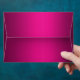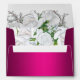 A charming and very chic metallic dark pink wedding envelope. On the inside is a beautiful large, white bridal bouquet of gorgeous white roses.