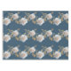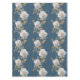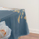White roses and gold leaves on a blue background tablecloth