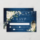 White Roses Blue Wood Lantern Wedding RSVP Card