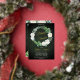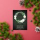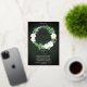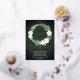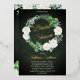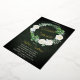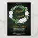 Beautiful watercolor white roses Bridal Shower wreath design with lovely eucalyptus and fern greenery in shades from dusky sage to vibrant green real gold foil editable script text on a dark green aged and textured look background. All text other than gold foil text is in a creamy off-white. The theme is continued on back with a top and bottom floral and greenery swags on a dark green aged and textured look background. Composite design by Holiday Hearts Designs.