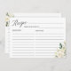 Greenery Ivory White Roses Floral Bridal Shower Recipe Card.
