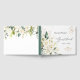 This design features an illustration of white roses with colourful vibrant foliage in watercolor style.