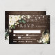 White Roses Lantern Rustic Wood Wedding RSVP Card
