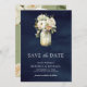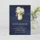 White Roses Mason Jar Photo Navy Blue Wedding Save The Date