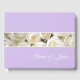 This guest book is shown in Lavender with a pretty floral white roses accent panel.