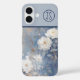 White Roses on Blue Background Monogrammed Case-Mate iPhone Case