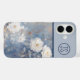 This beautiful white roses on a blue background oil painting style artwork is perfect for your phone case. Monogram can be changed or removed. AI assisted graphic purchased with commercial license. Artwork: DigitalCurio