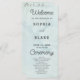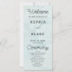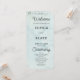 The wedding details, including the names of the couple, wedding date, and venue, are presented in classic black and grey using a simple block font. This choice ensures clarity and readability, allowing your guests to follow the ceremony proceedings seamlessly. To add a touch of whimsy and sophistication, the words "Welcome," "Ceremony," and "Wedding Party" are elegantly rendered in a pretty decorative script font. This script font enhances the program's overall appeal, infusing it with a sense of romance and grace.