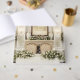 A beautifully presented guest book which came with a lovely gift box for storage. The book was hard back so stayed fresh after being handed around to all our wedding guests. We had lots of compliments about the design which went perfectly with our theme. Perfect, no issues at all with the printing. It arrived on time and came well packaged.