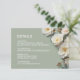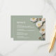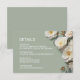 White 3D roses on a sage green background details card.