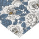 White roses with blue leaves on white short table runner