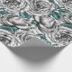 Beautiful hand-painted digital pattern, white roses with blue leaves.