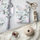 Rose wrapping paper.  White roses make a pattern over high quality paper.  The background is pale pink.  The rose leaves add a pretty green accent colour.