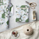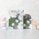 Pretty white roses wrapping paper. Heavy duty, quality gift wrap on a roll has an allover design of realistic white roses and pink buds with greenery. The background colour is dark green. Use this beautiful wrapping paper for weddings, birthdays and other occasions. Easily change the background colour in the “customise further” section.