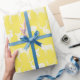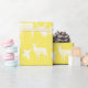 White rustic deer and deer head silhouettes on yellow wrapping paper.