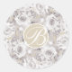 White Rustic Winter Roses Monogram Letter Initial Classic Round Sticker