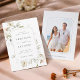 This wedding save the date invitation features watercolor illustrations of flowers in blush pink, white, and greenery with a photo on the back. For more advanced customisation of this design, please click the BLUE DESIGN TOOL BUTTON above! Matching items are also available.