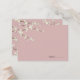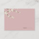 An original illustration of beautiful ivory white cream cherry blossoms or sakura spring flowers with light brown branches on a dusky pink background. This is a modern wedding place card / guest seating escort card.