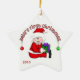 You can easily change the year on this customisable White Santa Baby 1st Christmas keesake ornament before ordering. Features a baby in a red santa suit and stocking cap and text that reads "Baby's First Christmas!".