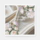White Satin with Roses and Peony Wedding Napkin