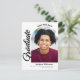 Make sure all your friends and relatives will be able to celebrate your child’s milestone graduation! Send out this stunning, simple, modern, personalised photo “Save the Date” postcard for an event to remember. On the front, bold, graphic, black handwritten script calligraphy, sans serif typography and a photo of your choice in an arch overlay a minimal white background. Add the photo of your choice and personalise the custom text with your grad’s name, school, class year and date. Your custom message and return address adorn the back. Matching invites, thank you cards stickers, hand fans and other graduation goodies are also available in this trendy and stylish collection. Guaranteed to add stylish fun to their special occasion!