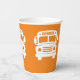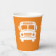 White School Bus on Orange Background Paper Cups