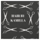 Black fabric for a hair stylist or hair dresser with six pair of scissors framing your name, monogram, or business name.