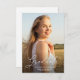 simple elegant white script photo graduation announcement and invitation card.