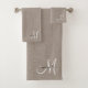 White Script Monogram Taupe Faux Linen Bath Towel Set