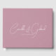 This flowing white handwritten script calligraphy on dusty pink wedding guest book is perfect for a modern wedding. Simple minimalist design.