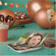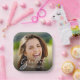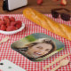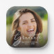 Chic graduation party paper plates featuring the graduate's photo overlayed with "Graduate" in an elegant white script and their name and class year in simple modern white typography.